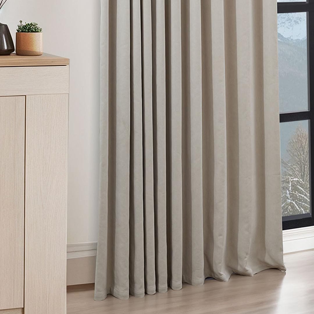 Made from premium velvet, these curtains add rich texture and warmth, draping beautifully for a sophisticated ambiance.